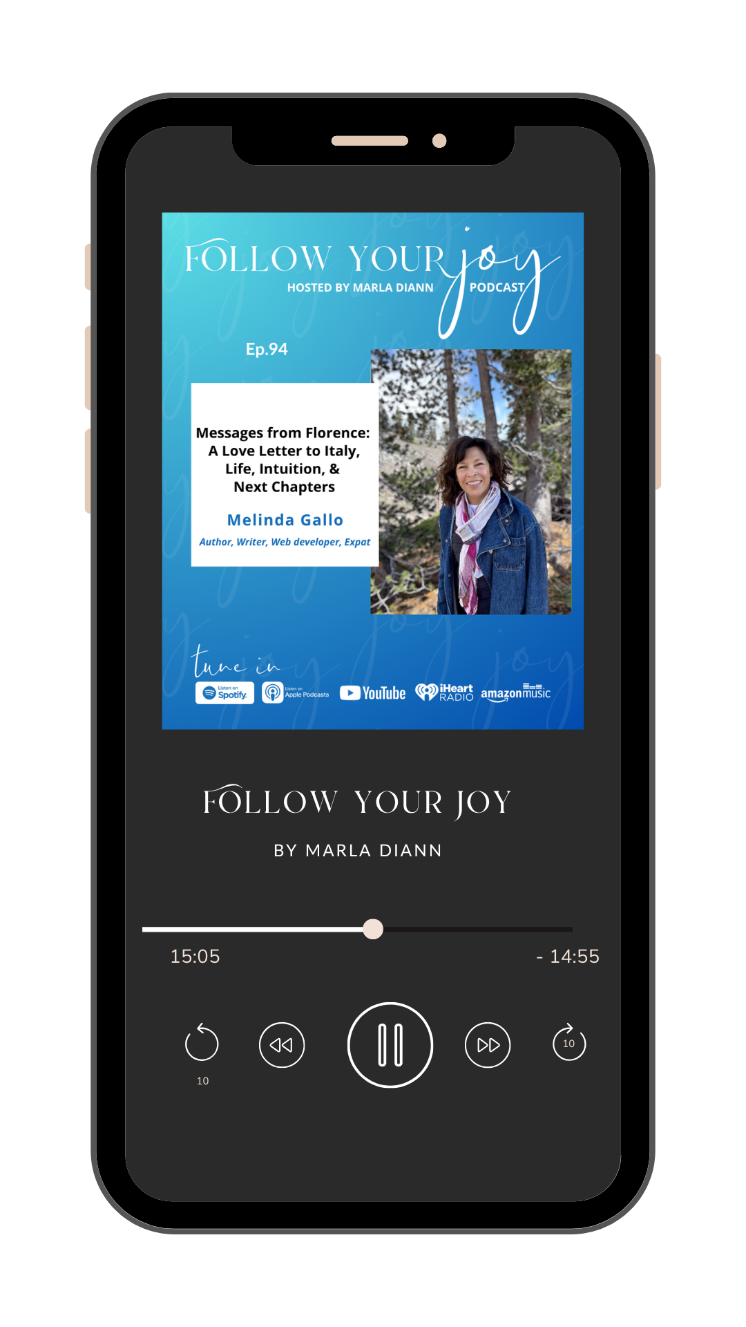 I’m joined by the beautiful and wise Melinda Gallo, writer, intuitive expat, website developer, and author of the exquisite new book Messages from Florence—a collection of soulful reflections, photography, and poetic messages received through her 21-year journey of living in Florence.